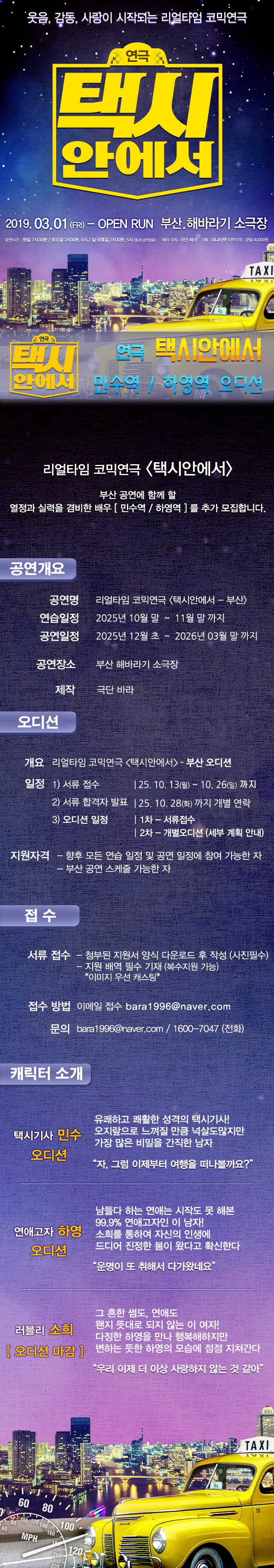연극 < 택시안에서 > - 부산공연 (민수역 / 하영역) 모집